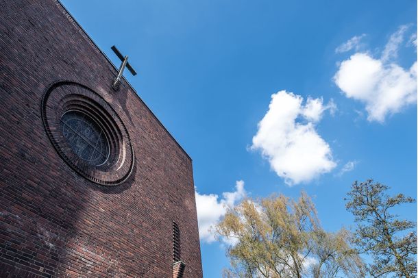 1929 wurde dann von der Pfarre St. Josef ein Wettbewerb ausgeschrieben, der Kirche, Pfarrhaus und Kaplanei umfassen sollte. Am 10. April 1930 erhielt Architekt Caspar Lennartz/Krefeld den Zuschlag, sodass am 29. Juni 1930 der Grundstein für den Bau gelegt wurde. Lennartz schuf einen Backsteinbau über fast quadratischem Grundriss mit an der Südostecke eingezogenem, vertikal gegliedertem Turm und im Inneren einer flachen Holzbalkendecke mit insgesamt 340 Sitz- und 400 Stehplätzen.